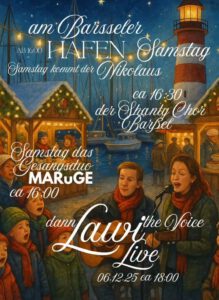 Treffen der Vereinsmitglieder ist am 06.12.25 um 16:15 Uhr im Barßeler Hafen beim Hafenkaffee auf der See-Terrasse.